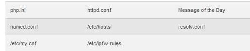 The Editors section allows you to edit various server files as well as other files related to installed software. You can edit the php.ini file, named and most of the common server files that sometimes need editing.