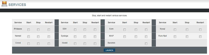 Services monitors some of the more common things that aren’t already on cPanels list of things that can be monitored and or restarted via WHM. Use this to stop, start or restart these services as well as check their status, the PID’s they are using and even a full FTP report of connected users and FTP transfers.